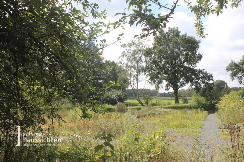 Der Garten ist wunderschön angelegt, mit Terrassen und Sitzecken zum Erholen, einem Schwimmteich, altem Baumbestand und größeren Freiflächen sowie enem großen Kräutergarten.