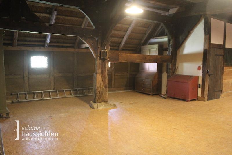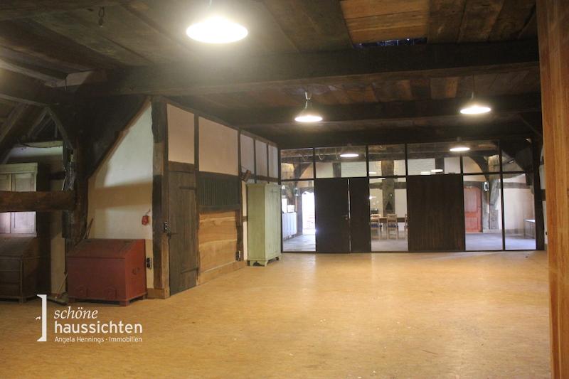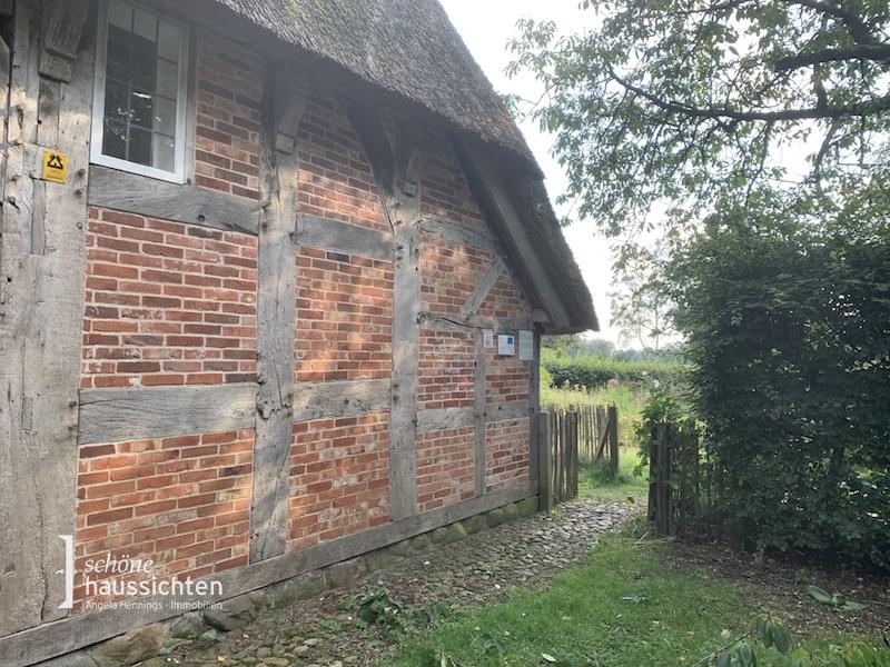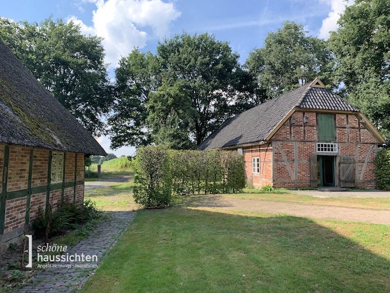 Hier haben wir eine ganz besondere Rarität für Sie! Ein unter Denkmalschutz stehendes Ensemble, bestehend aus einem Fachwerk Niedersachsenhaus aus dem Jahr 1649, welches 1998 neu aufgebaut wurde, sowie einem großen Nebengebäude, eine sogenannte Durchfahrtscheune, aus dem Beginn des 19. Jahrhunderts.